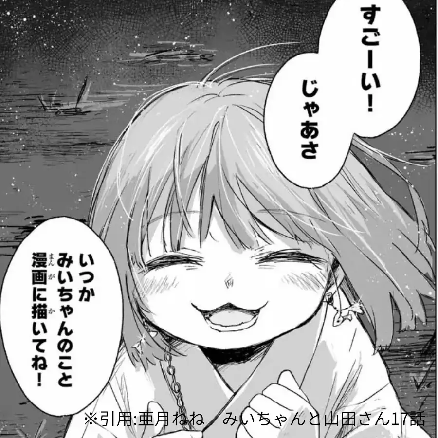 <みいちゃんと山田さん>というタイトルそのものから感じられる対極なふたり。みいちゃんという幼さと対比した賢さを見事に表現されているとここで感じます。
